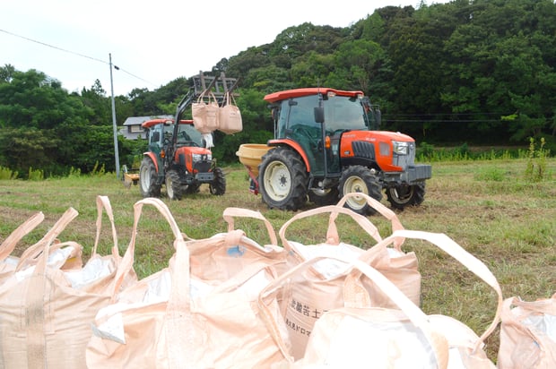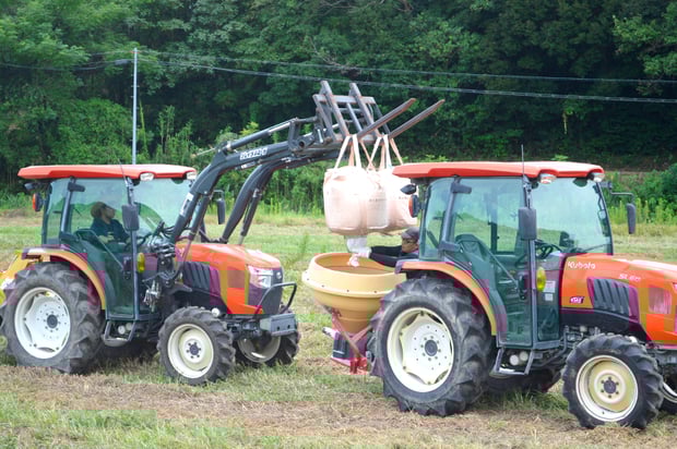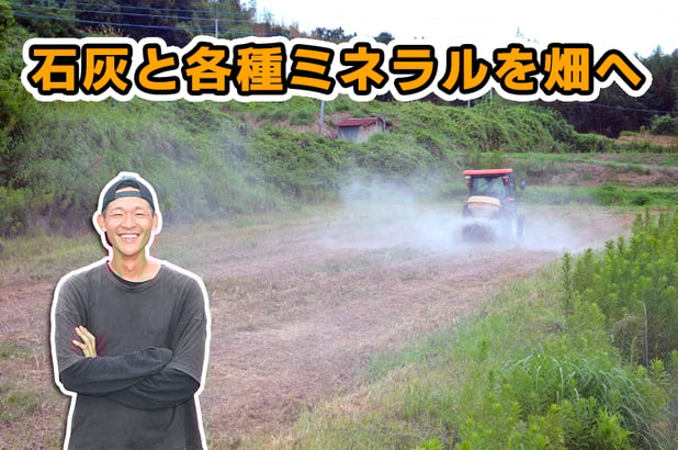 トラクターを使って石灰散布の準備をして・・・