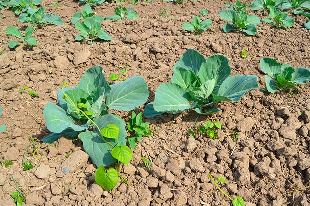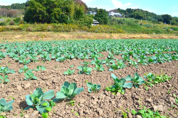今回は、畑に定植したキャベツの