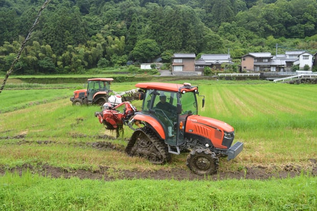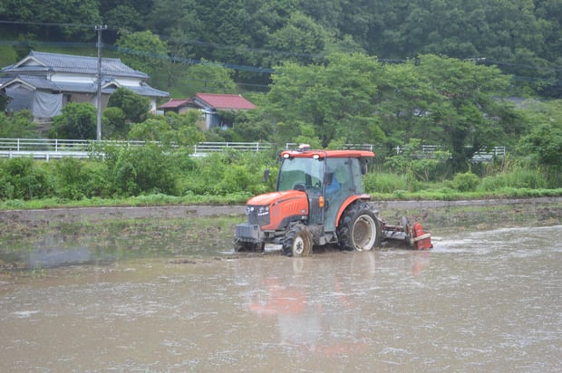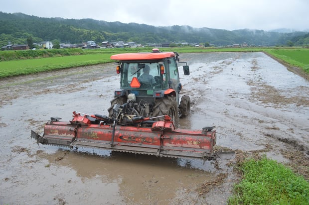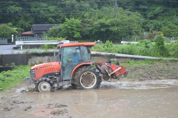 代掻きは、田んぼに水を入れた後に攪拌する作業です。